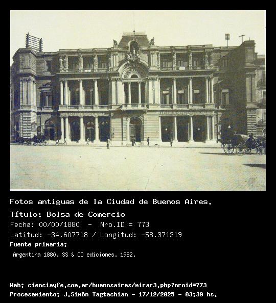 Bolsa de Comercio - Fecha: 00/00/1880 - [Id: 773] Plaza de Mayo, Rivadavia 323. Fuente:Argentina 1880, SS & CC ediciones. 1982.