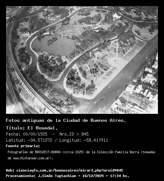 El Rosedal. - Fecha: 00/00/1925 - [Id: 845] Fuente:Fotografías de BROSZEIT-BORRA (circa 1925) de la Colección Familia Borra (tomadas de www.Histarmar.com.ar).
