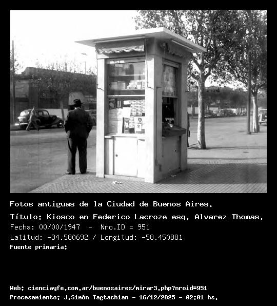 Kiosco en Federico Lacroze esq. Alvarez Thomas. - Fecha: 00/00/1947 - [Id: 951] Fuente: