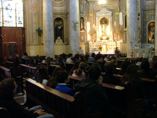 Se rezó especialmente por todas las víctimas de Cromagnon y sus familiares, y la Virgen de la Piedad con los rostros de los