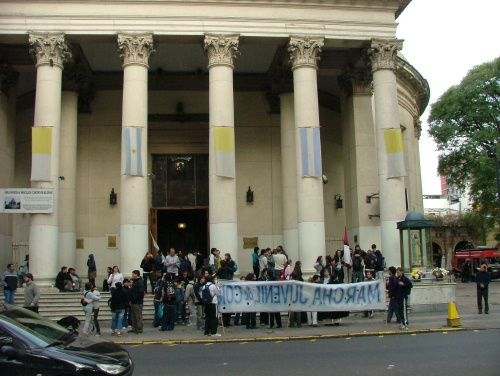 Con mucha alegría todos los jóvenes partieron hacia plaza de Mayo en una columna impresionante que avanzó por Rivadavia y luego Avda de Mayo. En la plaza los presentes los recibieron con un aplauso y comenzó la Santa Misa.
