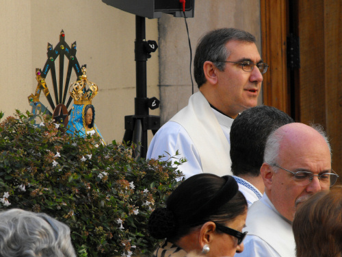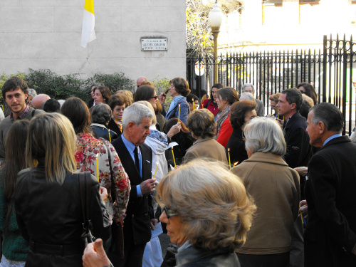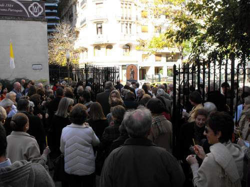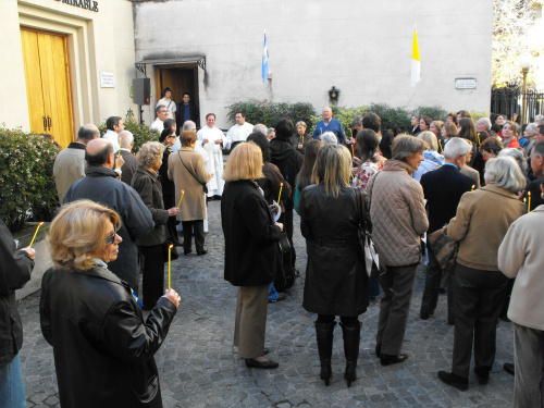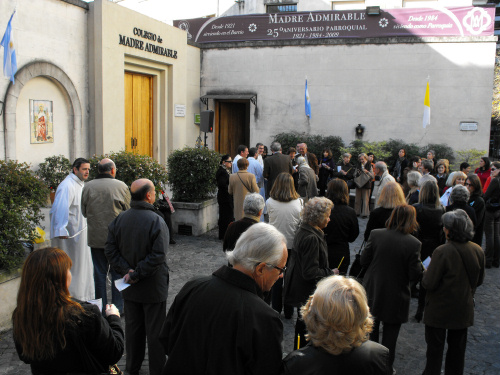 El sábado 8 de mayo de 2010, se celebró el día de la Virgen de Luján. La iglesia argentina, preparando los festejos del bicentenario, decidió también hacer una celebración en esa ciudad, y en todas las iglesias y ciudades importante de Argentina, celebrando la misa a las 15:00 hs, encendiendo una vela en todos los hogares y rezando por la Patria. Aquí les presentamos las fotos de la celebración conjunta que hicieron las parroquias de San Miguel, Nuestra Señora del Socorro, Nuestra Señora de las Victorias y de Madre Admirable. Luego de la misa, se repartieron pastelitos dulces y una chocolatada entre los asistentes, mientras se cantaron algunas canciones criollas. |