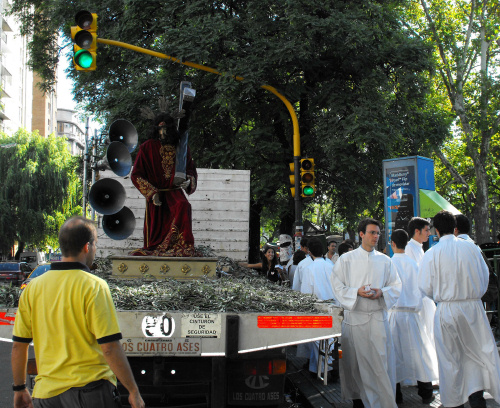 por la calle Rivadavia repartiendo estampitas, ramitos de olivo y bendiciones a quienes lo deseaban.