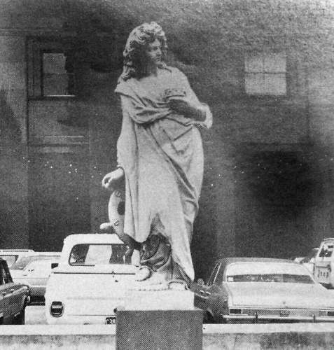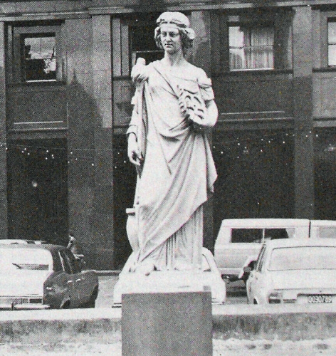 Estatua de la Pirámide de mayo - 2 - 00/00/1980 - [652] - Orden: 75 Esta estatua del viejo Banco Provincia y fue ubicada en la pirámide de mayo de 1878 a 1884. Ahora está ubicada (son cuatro en total) en la placita frente a la Iglesia de San Francisco.
