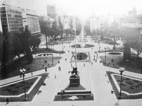 Plaza y Estatua de Lavalle - 00/00/1900 - [699] - Orden: 42 La plaza Lavalle había quedado fuera del trazado primario de Garay, con lo cual se había convertido en tierra de nadie. Se lo conoció por mucho tiempo como Hueco de Zamudio. Fue plaza de armas y depósito de artillería.