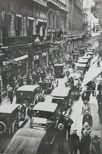Corrientes y Reconquista - 00/00/1926 - [679] - Orden: 54 Corrientes angosta en su cruce con Reconquista. Sobre la izquierda se ve el Correo Central que funcionó allí desde 1902 hasta 1928.