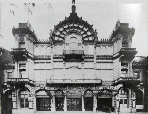 Teatro Coliseo - Casa de Italia - 00/00/1910 - [703] - Orden: 47 Construido por el arquitecto Carlos Nordman. Inaugurado el 6 de agosto de 1905 y demolido en 1940. El 27 de agosto de 1920 se realizó desde allí la transmisión de la primera ópera completa: Parsifal de Wagner. Recien el 11 de abril de 1961 se pudo reinaugurar el nuevo teatro.