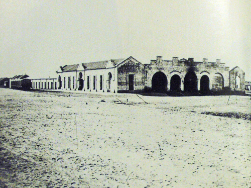 Primer hotel de inmigrantes - 00/00/1885 - [725] - Orden: 29 El primer hotel de inmigrantes era de madera y chapa. Estaba en la costa, pegado al Río, en Retiro. Tenía una rampa para llegar con las carretas desde el Río. Funcionó desde 1878 hasta 1911. Tenía capacidad para 800 personas.