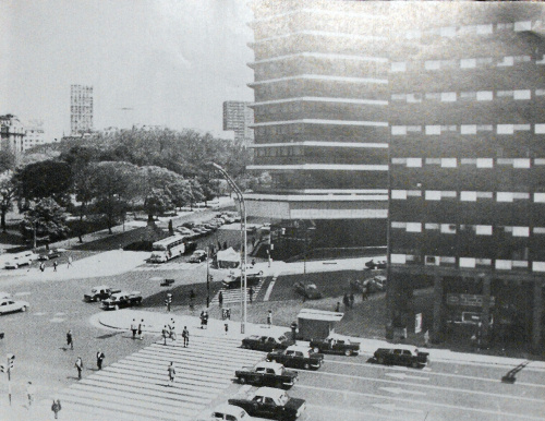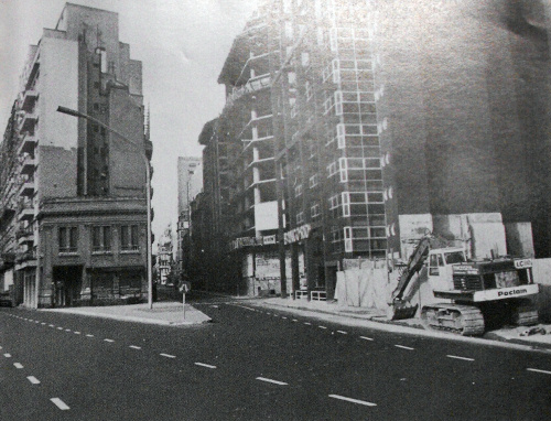 Bartolomé Mitre y Diagonal - 00/00/1980 - [656] - Orden: 78 Muestra el solar ocupado otrora por la calle Piedad (Bartolome Mitre) entre Florida y Maipú, hoy tronchada por la diagonal que acabó con todas las casas.
