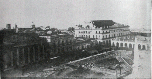 Demolición de la Recova (Lado S) - 10/05/1884 - [754] - Orden: 27 Se ve la Casa de Gobierno y el ex-Correo, aún sin unir. El callejón que las divide llevaba a la Aduana Nueva. Se el edificio de Rentas Generales y estaba también el Congreso Nacional (no sale en la foto).