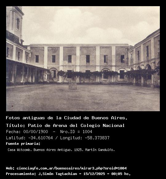 Patio de Arena del Colegio Nacional - 00/00/1900 - [Id: 1004] Fuente:Casa Witcomb. Buenos Aires Antiguo. 1925. Martín Gandulfo. Palabras claves:CNBA |
