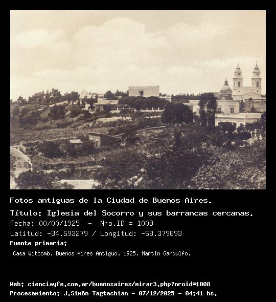 Iglesia del Socorro y sus barrancas cercanas. - 00/00/1925 - [Id: 1008] Fuente:Casa Witcomb. Buenos Aires Antiguo. 1925. Martín Gandulfo. Palabras claves:Iglesia |