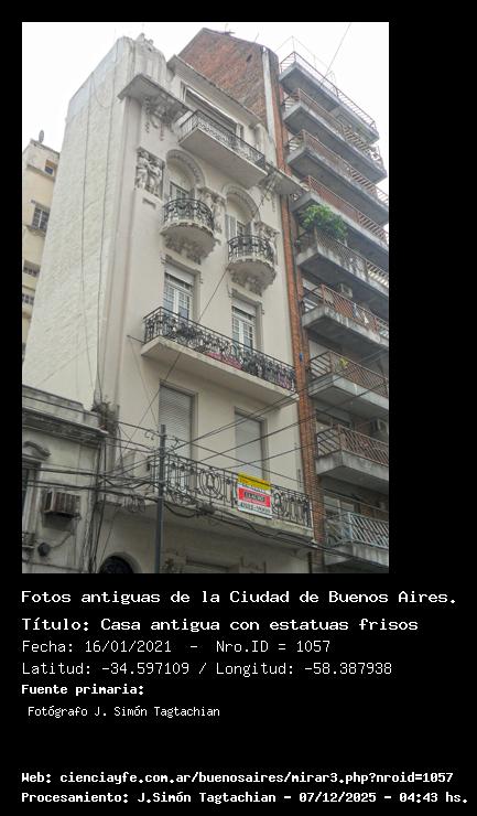 Casa antigua con estatuas frisos - 16/01/2021 - [Id: 1057] Fuente:Fotógrafo J. Simón Tagtachian |