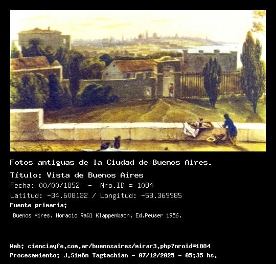 Vista de Buenos Aires - 00/00/1852 - [Id: 1084] Fuente:Buenos Aires. Horacio Raúl Klappenbach. Ed.Peuser 1956. |