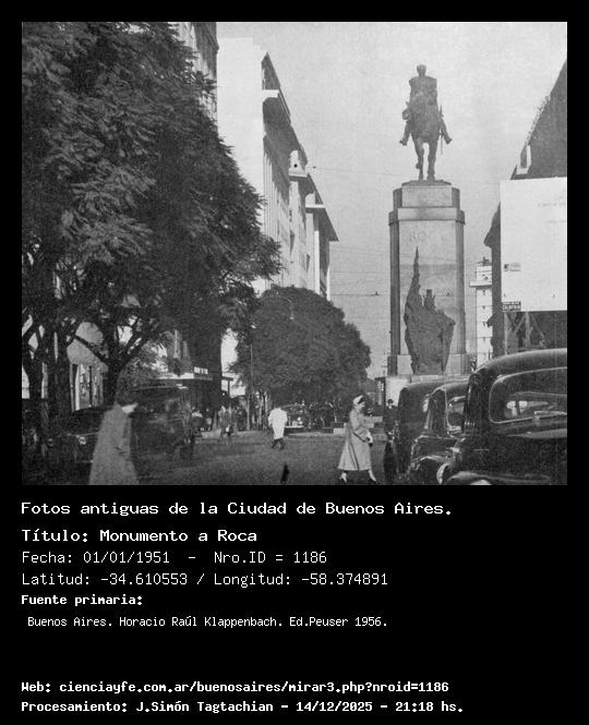 Monumento a Roca - 01/01/1951 - [Id: 1186] Fuente:Buenos Aires. Horacio Raúl Klappenbach. Ed.Peuser 1956. Palabras claves:Diagonal sur |