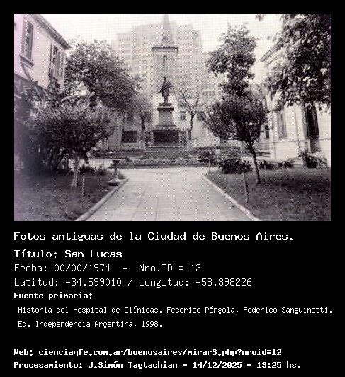 San Lucas - 00/00/1974 - [Id: 12] Fuente:Historia del Hospital de Clínicas. Federico Pérgola, Federico Sanguinetti. Ed. Independencia Argentina, 1998. Palabras claves:Iglesia San Lucas, Hospital de Clínicas; Plaza Houssay |
