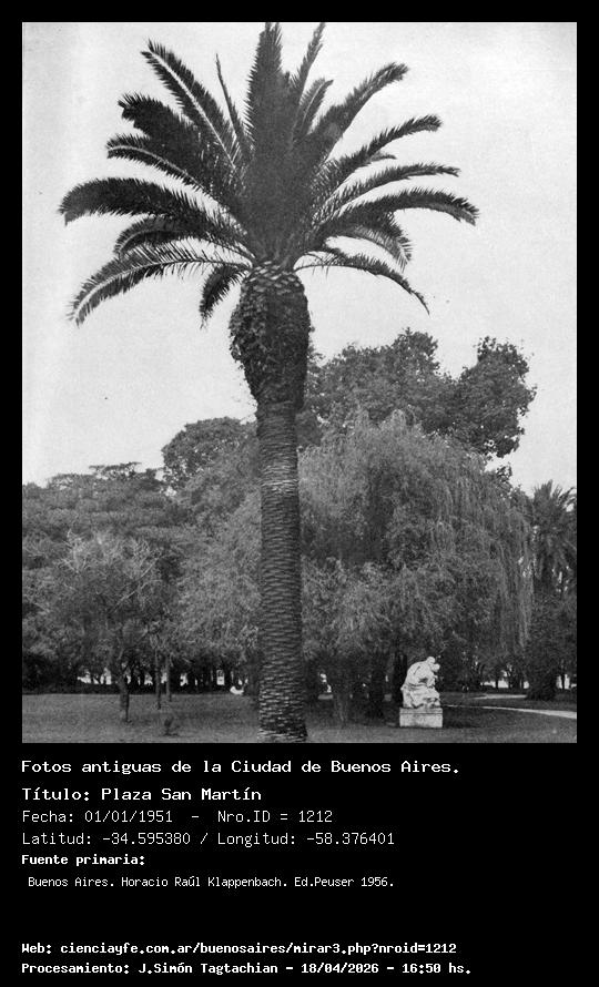 Plaza San Martín - 01/01/1951 - [Id: 1212] Fuente:Buenos Aires. Horacio Raúl Klappenbach. Ed.Peuser 1956. |