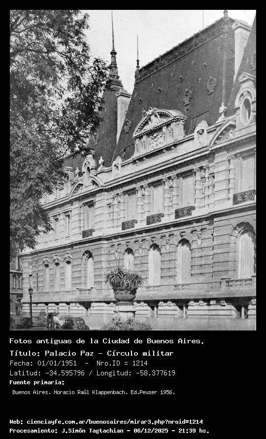 Palacio Paz - Círculo militar - 01/01/1951 - [Id: 1214] Fuente:Buenos Aires. Horacio Raúl Klappenbach. Ed.Peuser 1956. |