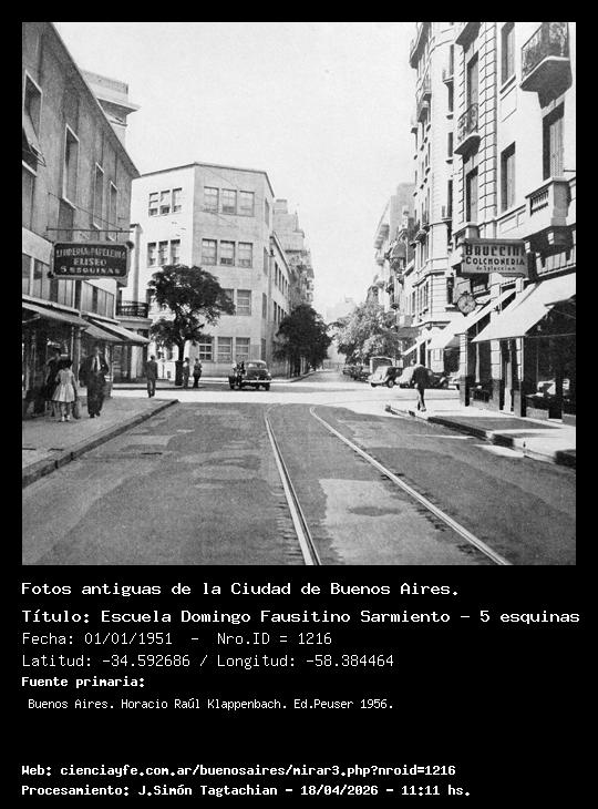 Escuela Domingo Fausitino Sarmiento - 5 esquinas - 01/01/1951 - [Id: 1216] Fuente:Buenos Aires. Horacio Raúl Klappenbach. Ed.Peuser 1956. |