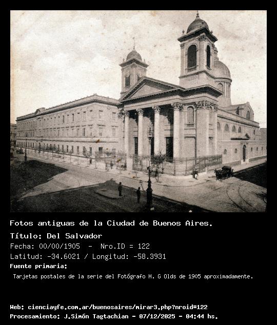 Del Salvador - 00/00/1905 - [Id: 122] Fuente:Tarjetas postales de la serie del Fotógrafo H. G Olds de 1905 aproximadamente. Palabras claves:Iglesia Del Salvador |
