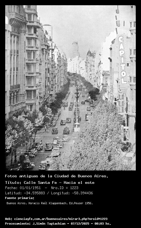Calle Santa Fe - Hacia el este - 01/01/1951 - [Id: 1223] Fuente:Buenos Aires. Horacio Raúl Klappenbach. Ed.Peuser 1956. |
