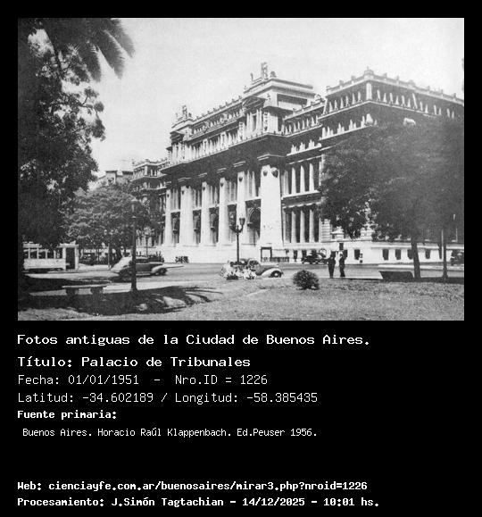 Palacio de Tribunales - 01/01/1951 - [Id: 1226] Fuente:Buenos Aires. Horacio Raúl Klappenbach. Ed.Peuser 1956. |