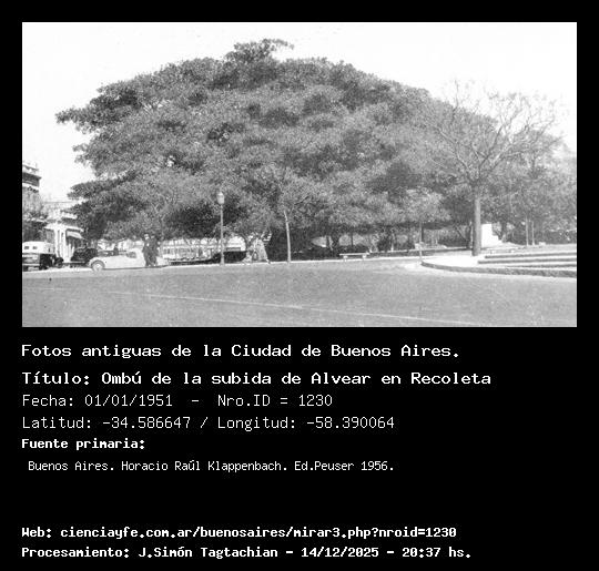 Ombú de la subida de Alvear en Recoleta - 01/01/1951 - [Id: 1230] Fuente:Buenos Aires. Horacio Raúl Klappenbach. Ed.Peuser 1956. |