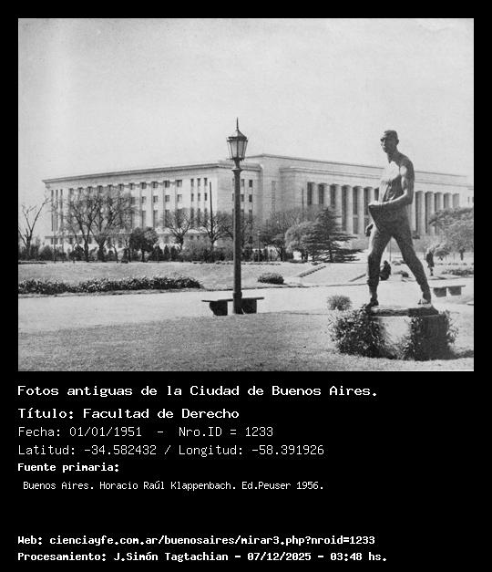 Facultad de Derecho - 01/01/1951 - [Id: 1233] Fuente:Buenos Aires. Horacio Raúl Klappenbach. Ed.Peuser 1956. |