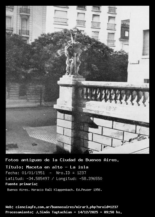 Maceta en alto - La isla - 01/01/1951 - [Id: 1237] Fuente:Buenos Aires. Horacio Raúl Klappenbach. Ed.Peuser 1956. |
