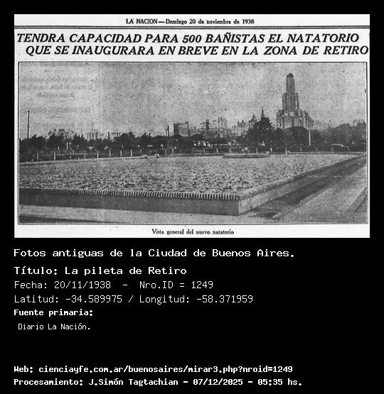 La pileta de Retiro - 20/11/1938 - [Id: 1249] Fuente:Diario La Nación. |