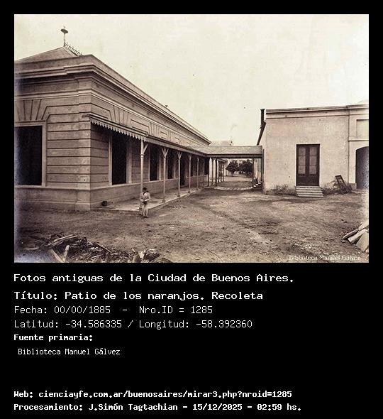 Patio de los naranjos. Recoleta - 00/00/1885 - [Id: 1285] Fuente:Biblioteca Manuel Gálvez |