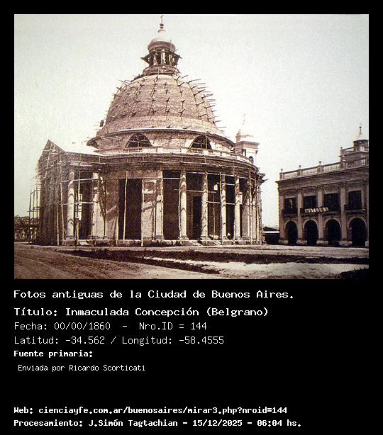 Inmaculada Concepción (Belgrano) - 00/00/1860 - [Id: 144] Fuente:Enviada por Ricardo Scorticati Palabras claves:Iglesia Inmaculada Concepción (Belgrano) |