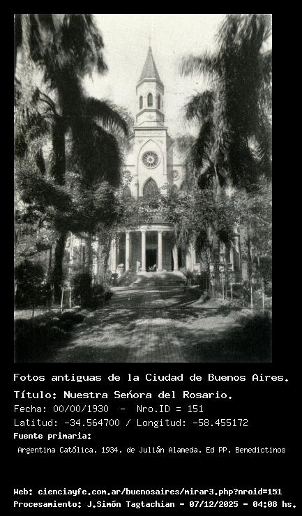 Nuestra Señora del Rosario. - 00/00/1930 - [Id: 151] Fuente:Argentina Católica. 1934. de Julián Alameda. Ed PP. Benedictinos Palabras claves:Iglesia |