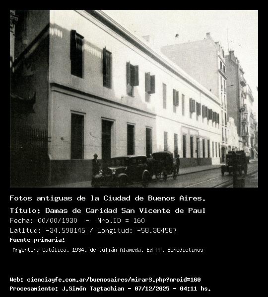 Damas de Caridad San Vicente de Paul - 00/00/1930 - [Id: 160] Fuente:Argentina Católica. 1934. de Julián Alameda. Ed PP. Benedictinos |