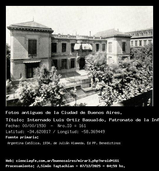Internado Luis Ortiz Basualdo. Patronato de la Infancia. - 00/00/1930 - [Id: 161] Fuente:Argentina Católica. 1934. de Julián Alameda. Ed PP. Benedictinos |