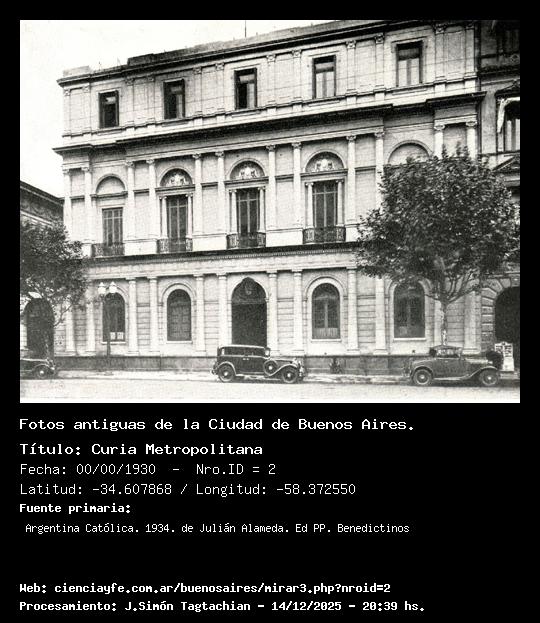 Curia Metropolitana - 00/00/1930 - [Id: 2] Fuente:Argentina Católica. 1934. de Julián Alameda. Ed PP. Benedictinos Palabras claves:Catedral, Curia, Plaza de Mayo |