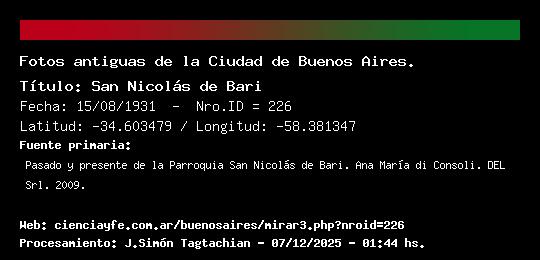 San Nicolás de Bari - 15/08/1931 - [Id: 226] Fuente:Pasado y presente de la Parroquia San Nicolás de Bari. Ana María di Consoli. DEL Srl. 2009. Palabras claves:San Nicolás de Bari |