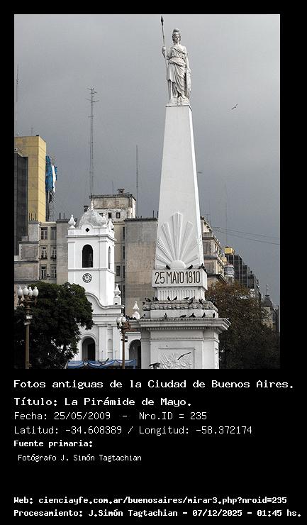 La Pirámide de Mayo. - 25/05/2009 - [Id: 235] Fuente:Fotógrafo J. Simón Tagtachian Palabras claves:Plaza de Mayo, Pirámide de mayo, Cabildo |