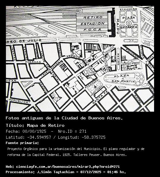 Mapa de Retiro - 00/00/1925 - [Id: 271] Fuente:Proyecto Orgánico para la urbanización del Municipio. El plano regulador y de reforma de la Capital Federal. 1925. Talleres Peuser. Buenos Aires. Palabras claves:Retiro |