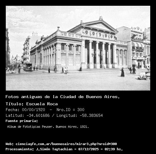 Escuela Roca - 00/00/1920 - [Id: 300] Fuente:Album de Fototipias Peuser. Buenos Aires, 1921. Palabras claves:Escuela Roca, Tribunales, Ilse |