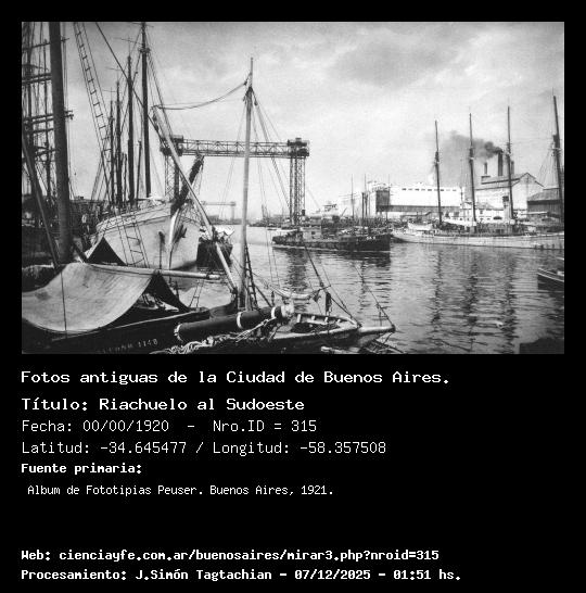 Riachuelo al Sudoeste - 00/00/1920 - [Id: 315] Fuente:Album de Fototipias Peuser. Buenos Aires, 1921. |