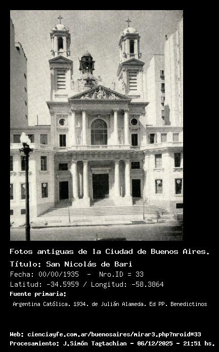 San Nicolás de Bari - 00/00/1935 - [Id: 33] Fuente:Argentina Católica. 1934. de Julián Alameda. Ed PP. Benedictinos Palabras claves:Iglesia San Nicolás de Bari |