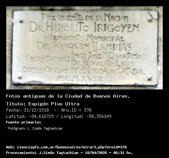 Espigón Plus Ultra - 31/12/1918 - [Id: 378] (Ver la Foto x 2) - (Ver la Foto x 3) - (Exportar foto) El Espigón se construyó en 1918, bajo la presidencia del Dr. Hipólito Irigoyen y siendo intendente municipal el Dr. Joaquín Llambías.