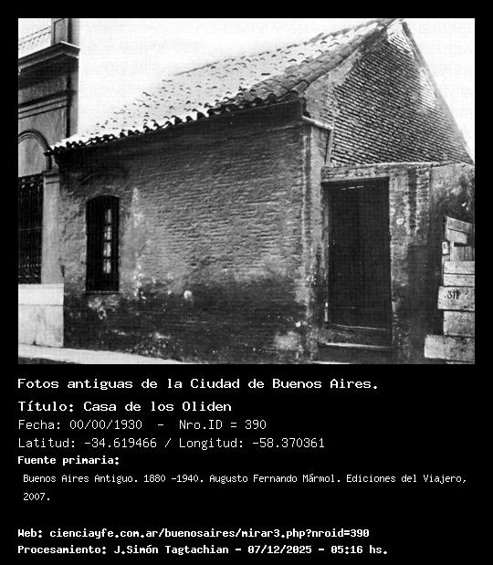 Casa de los Oliden - 00/00/1930 - [Id: 390] Fuente:Buenos Aires Antiguo. 1880 -1940. Augusto Fernando Mármol. Ediciones del Viajero, 2007. |