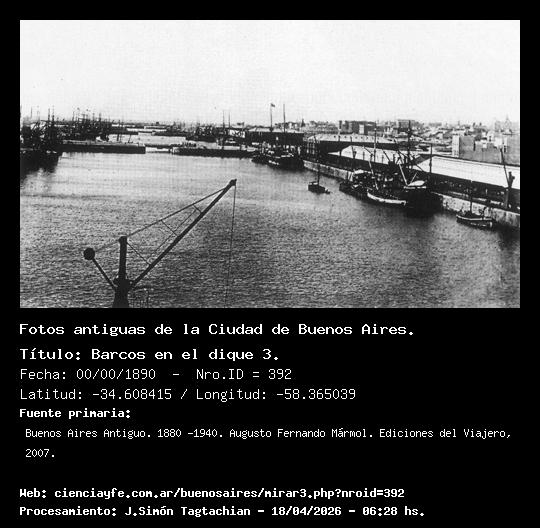 Barcos en el dique 3. - 00/00/1890 - [Id: 392] Fuente:Buenos Aires Antiguo. 1880 -1940. Augusto Fernando Mármol. Ediciones del Viajero, 2007. |