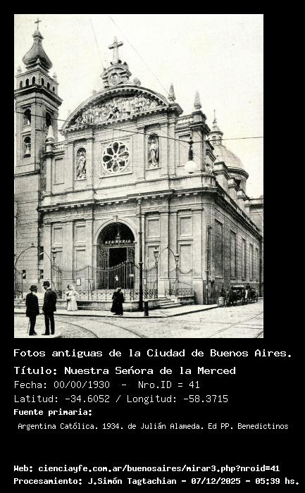 Nuestra Señora de la Merced - 00/00/1930 - [Id: 41] Fuente:Argentina Católica. 1934. de Julián Alameda. Ed PP. Benedictinos Palabras claves:Iglesia Nuestra Señora de la Merced |