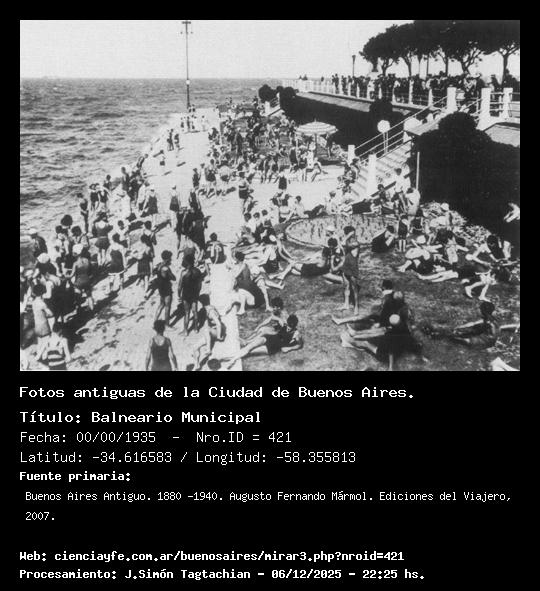 Balneario Municipal - 00/00/1935 - [Id: 421] Fuente:Buenos Aires Antiguo. 1880 -1940. Augusto Fernando Mármol. Ediciones del Viajero, 2007. Palabras claves:Espigón Plus Ultra |