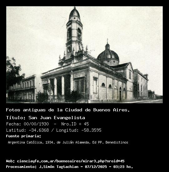 San Juan Evangelista - 00/00/1930 - [Id: 45] Fuente:Argentina Católica. 1934. de Julián Alameda. Ed PP. Benedictinos Palabras claves:Iglesia San Juan Evangelista |