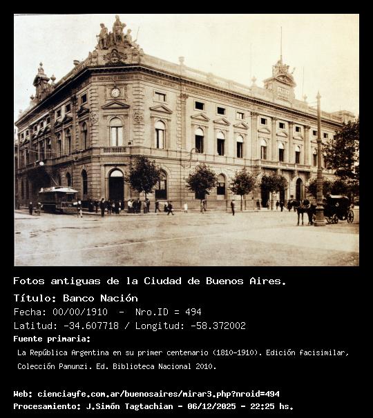 Banco Nación - 00/00/1910 - [Id: 494] Fuente:La República Argentina en su primer centenario (1810-1910). Edición facisimilar, Colección Panunzi. Ed. Biblioteca Nacional 2010. Palabras claves:Banco Nación |