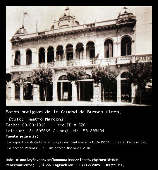 Teatro Marconi - 00/00/1910 - [Id: 526] (Ver la Foto x 2) - (Ver la Foto x 3) - (Exportar foto) Rivadavia 2330 (entre Pasteur y Azcuénaga).